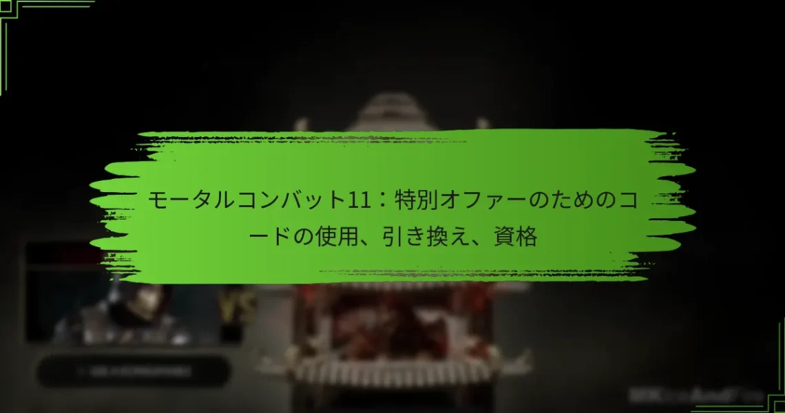 05/03/2026モータルコンバット11では、プレイヤーがプロモーションコードを通じて割引、独占的なゲーム内コンテンツ、季節ごとの特典にアクセスできるさまざまな特別プロモーションを提供しています。これらのコードを利用するには、プレイヤーは自分のゲームプラットフォームに基づいて特定の手順に従う必要があり、意図した特典をアンロックすることを確実にします。これらのコードを使用するための資格は、通常、有効な購入履歴を必要とし、開発者によって設定された地域制限の対象となる場合があります。 モータルコンバット11で利用可能な特別オファーは何ですか? モータルコンバット11には、プレイヤーに割引、独占的なゲーム内コンテンツ、季節ごとのプロモーションのためのプロモーションコードを提供するさまざまな特別オファーがあります。これらのオファーは、追加の価値やユニークなアイテムを提供することでゲーム体験を向上させることができるため、現在の機会について情報を得ておくことが価値があります。 割引のためのプロモーションコードの種類 モータルコンバット11のプロモーションコードは大きく異なる場合があり、通常、ゲーム購入、ダウンロード可能なコンテンツ(DLC)、またはゲーム内通貨に対する割引を提供します。一般的なタイプには、パーセンテージオフコード、固定金額の割引、複数のアイテムを割引価格で提供するバンドルオファーが含まれます。 これらのコードを使用するには、プレイヤーは通常、PlayStation Store、Xbox Marketplace、またはSteamなどのプラットフォームでチェックアウトプロセス中に入力します。各コードに関連する利用規約を確認することが重要であり、一部には有効期限や特定の資格基準がある場合があります。 独占的なゲーム内コンテンツオファー 独占的なゲーム内コンテンツオファーには、通常のゲームプレイでは入手できないユニークなスキン、キャラクター、または特別な技が含まれます。これらのオファーは、プロモーションイベント、パートナーシップ、または期間限定のセールに関連していることが多く、プレイヤーが自分の体験をカスタマイズするために非常に求められています。 たとえば、特定のプロモーションコードは、ゲームプレイを向上させる特別なキャラクタースキンやユニークなフィニッシュムーブをアンロックすることがあります。プレイヤーは、ゲームの開発者や公式のソーシャルメディアチャンネルからの発表に注意を払い、これらの期間限定の機会を逃さないようにするべきです。 季節ごとのイベントベースのプロモーション モータルコンバット11の季節ごとのイベントベースのプロモーションは、通常、休日や重要なゲームイベントと一致します。これらのプロモーション中、プレイヤーは割引、独占アイテム、またはその機会に関連するテーマコンテンツを含む特別オファーを見つけることが期待できます。 たとえば、ハロウィンの期間中、プレイヤーは特別なスキンやユニークな報酬を提供するテーマチャレンジを見つけるかもしれません。これらのプロモーションは通常、期間限定であるため、プレイヤーはオファーが期限切れになる前に迅速に行動する必要があります。 オファーの地域的な可用性 モータルコンバット11の特別オファーの可用性は地域によって異なる場合があり、一部のプロモーションは特定の国やプラットフォームに限定されています。アメリカのプレイヤーは、ヨーロッパやアジアのプレイヤーとは異なるコードやオファーにアクセスできる場合があります。 プレイヤーは、自分の地域に特有のプロモーションを確認するために、地元のゲームプラットフォームをチェックすることが重要です。これにより、利用可能な割引や市場に合わせた独占コンテンツを最大限に活用できるようになります。 現在のオファーを見つける方法 モータルコンバット11の現在のオファーを見つけるのは簡単です。プレイヤーは、公式のモータルコンバットのウェブサイト、ソーシャルメディアチャンネル、ゲームプラットフォームを定期的にチェックして、プロモーションコードや特別イベントに関する発表を確認できます。さらに、ニュースレターに登録することで、新しいオファーに関するタイムリーな更新を受け取ることができます。 もう一つの効果的な方法は、モータルコンバット11に特化したコミュニティフォーラムやグループに参加することで、プレイヤーは最新の取引やコードに関する情報を共有することがよくあります。コミュニティに参加し続けることで、プレイヤーは隠れたオファーを発見し、ゲーム体験を最大限に活用できます。 モータルコンバット11のコードを引き換えるにはどうすればよいですか? モータルコンバット11のコードを引き換えるには、プレイヤーは自分のゲームプラットフォームに応じた特定の手順に従う必要があります。このプロセスには、特別オファーやコ